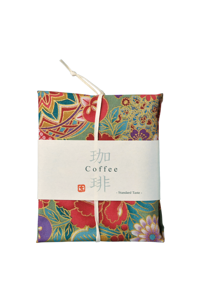 スタンダードテイストの扱いやすいドリップバッグタイプコーヒーを和の布で包み込みました。