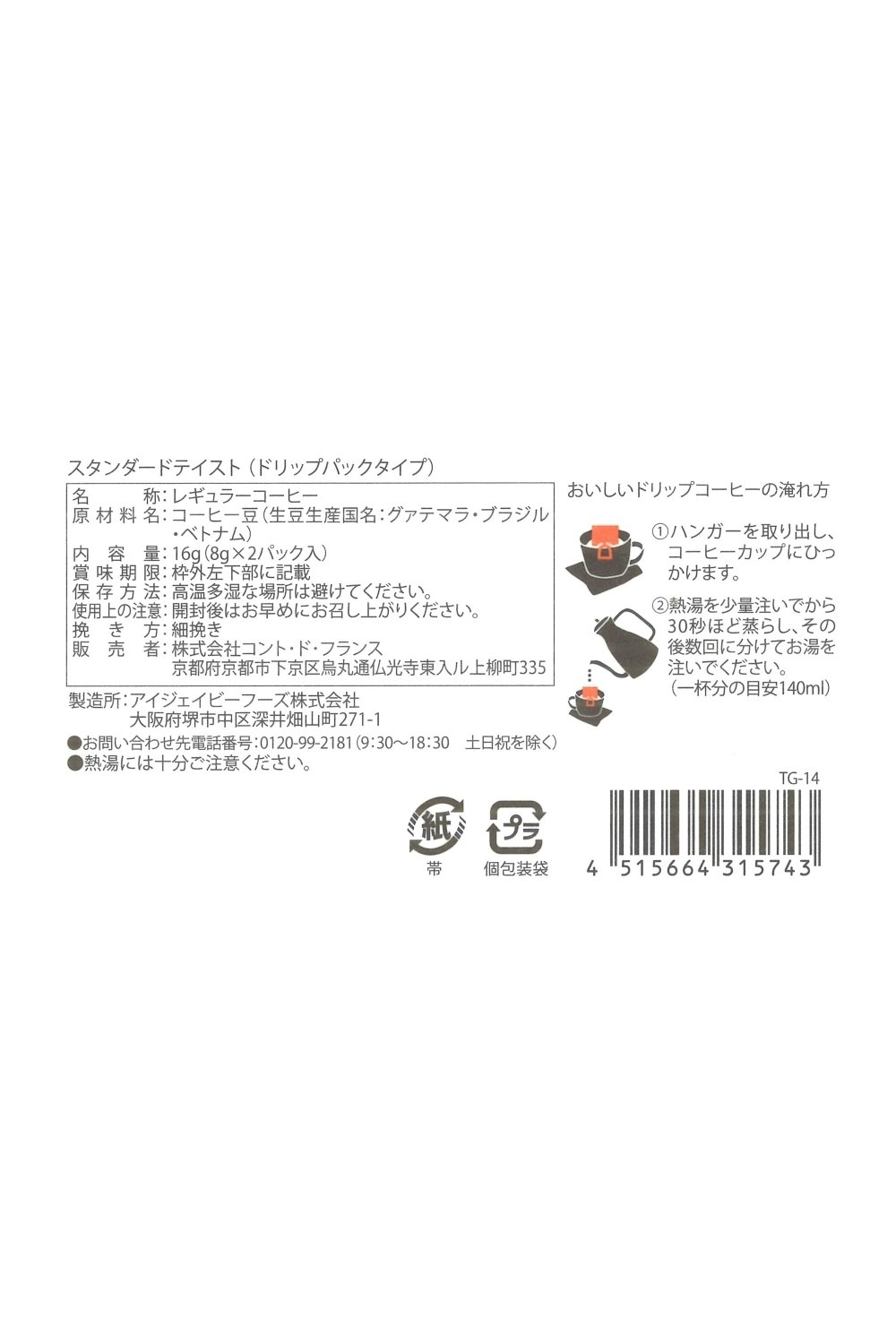 コーヒードリップバッグ2P入り
