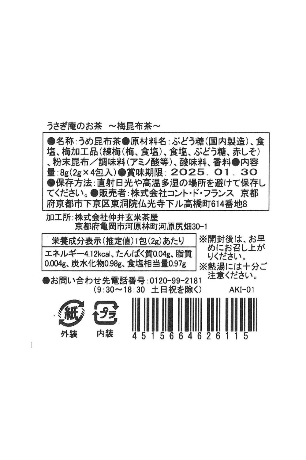 うさぎ庵のお茶 梅昆布茶