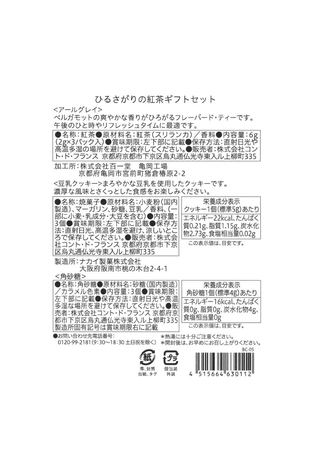 - :内容量:ティーバッグ3P、クッキー3個、シュガー3個