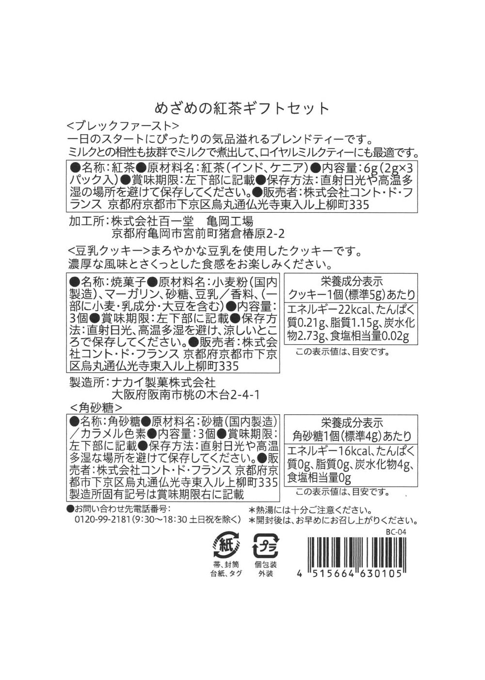 - :内容量:ティーバッグ3P、クッキー3個、シュガー3個